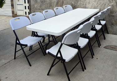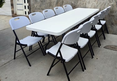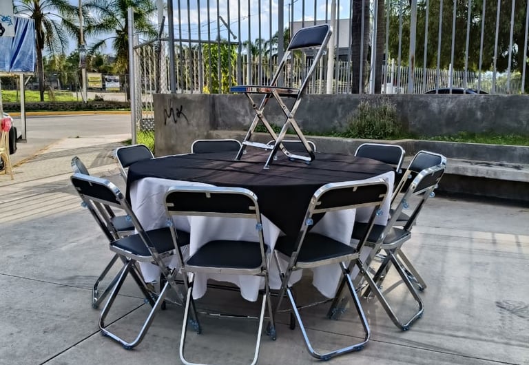 Maximiza la rentabilidad de tu negocio con nuestra línea de sillas y mesas plegables de uso rudo. Diseñadas para el ajetreo constante de los eventos, ofrecemos sillas de plástico y resina reforzada (acojinadas y rígidas) y tablones rectangulares o redondos con cubierta de fibra de vidrio o plástico soplado. Mobiliario ligero, fácil de transportar y apilable, ideal para optimizar espacios sin sacrificar la comodidad del invitado.