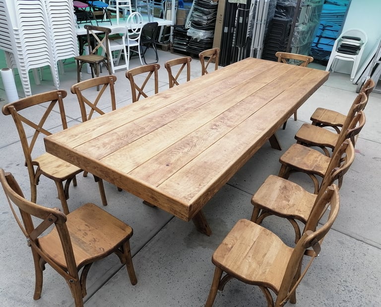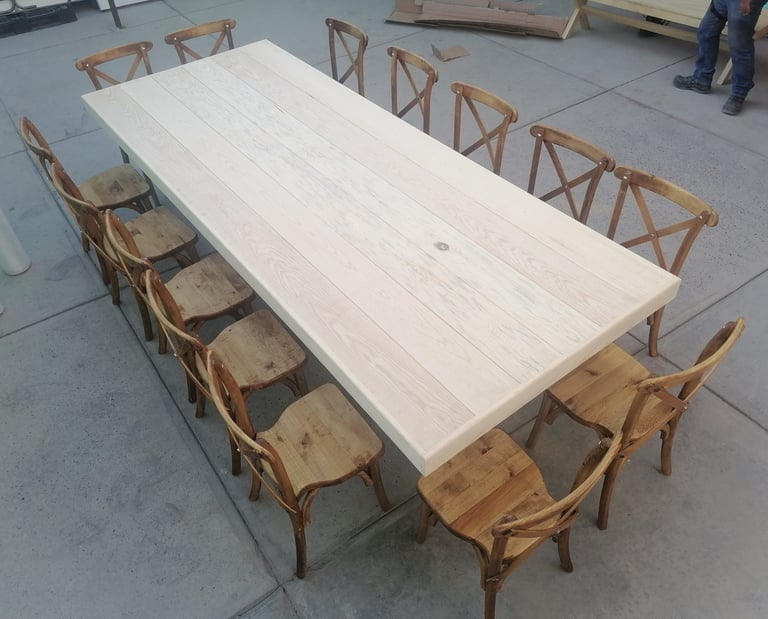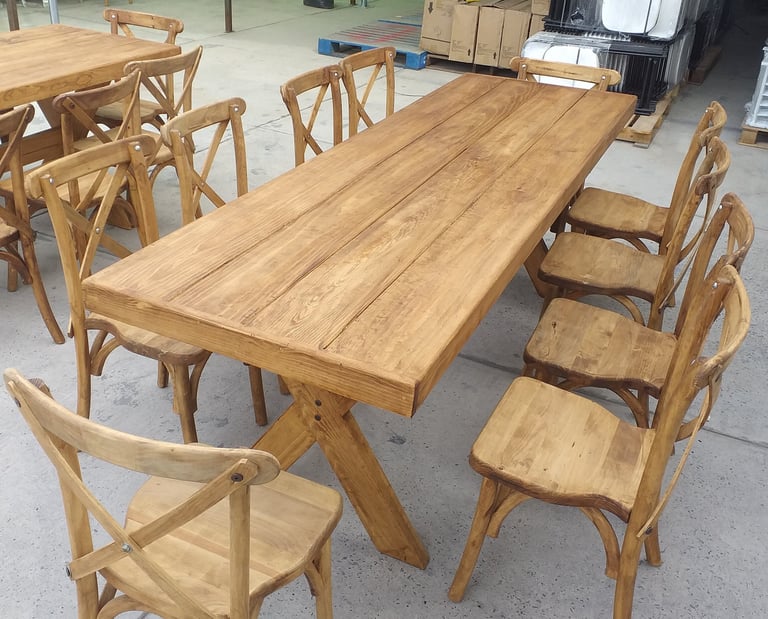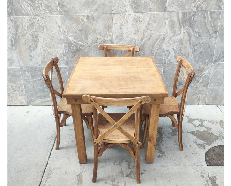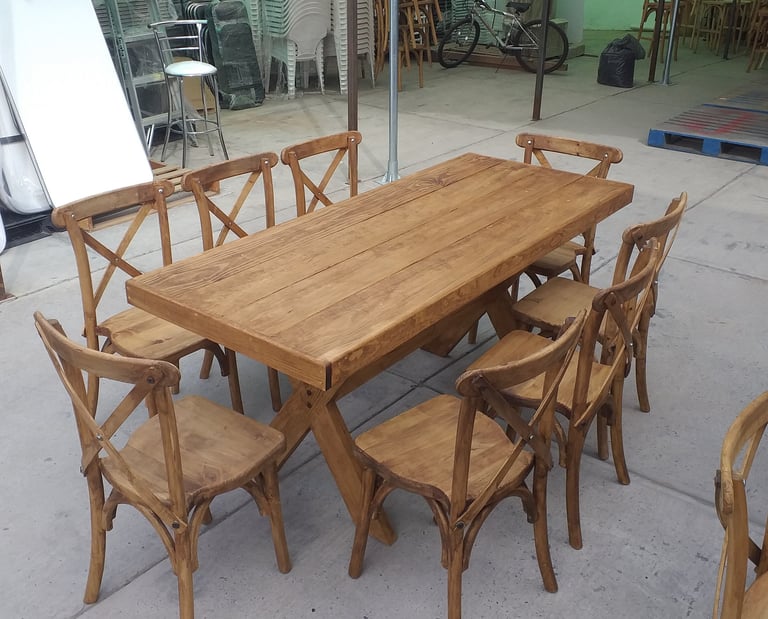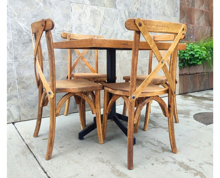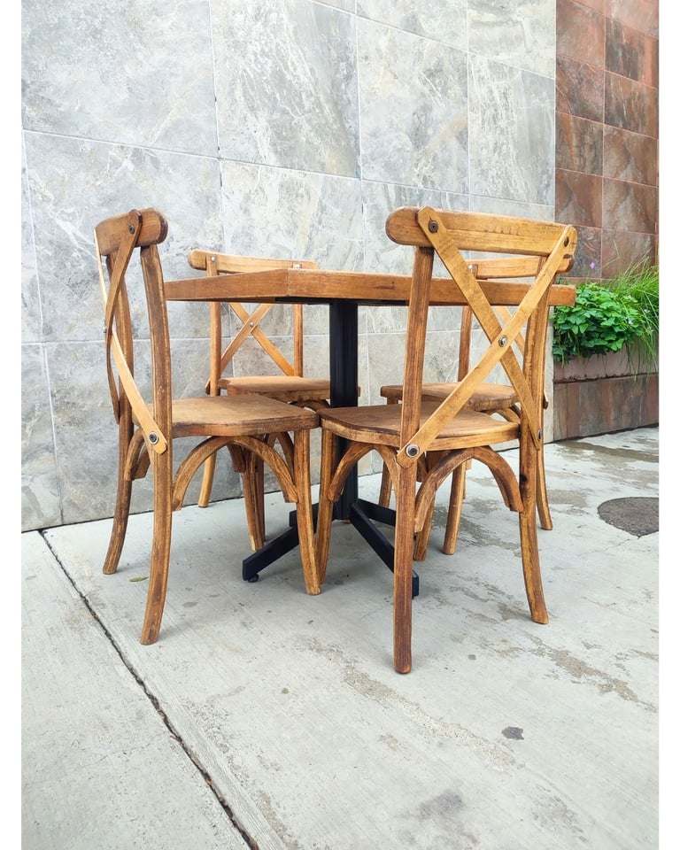 Somos fabricantes de la icónica Silla Cross back, famosa por su comodidad y diseño atemporal, así como de mesas y tablones de madera que no requieren mantel para lucir espectaculares. Ya sea para un montaje estilo Farmhouse o un comedor comercial elegante, nuestros acabados garantizan durabilidad y estabilidad. Invierte en mobiliario con alma, fabricado con la calidad y confianza que distingue a Sillas Jalisco.