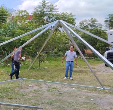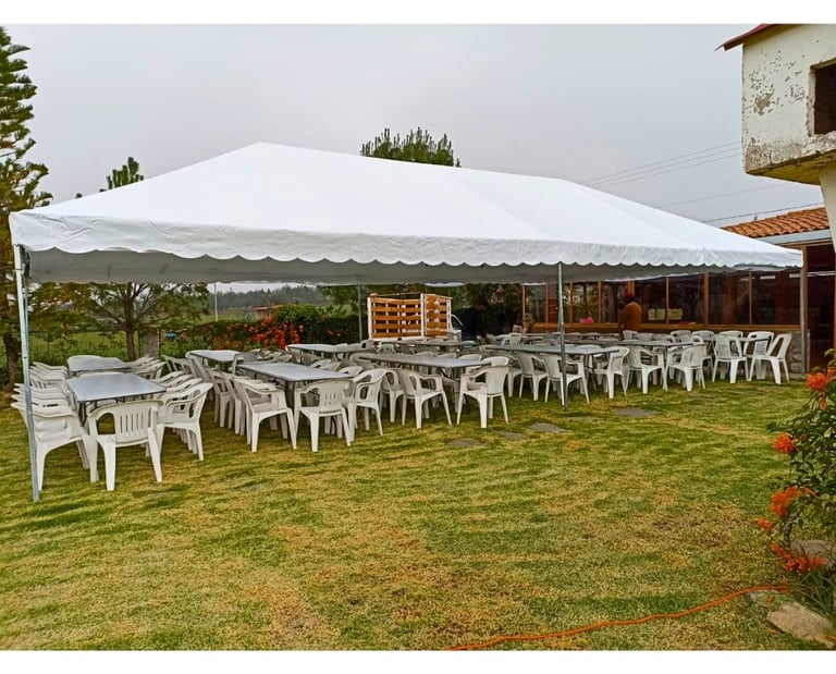 Cada toldo es una pieza de calidad premium: utilizamos lonas de alto gramaje para protección total contra el sol y la lluvia, e incluimos el cielo decorativo (falso plafón de tela) que aporta ese toque de sofisticación y calidez interior que buscan los clientes más exigentes. Disponibles en diversas medidas modulares, nuestros toldos viajan seguros desde nuestra fábrica hasta tu ciudad. Invierte en infraestructura duradera que luce espectacular.